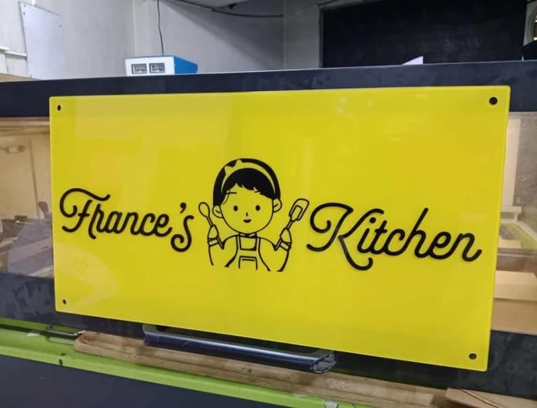 Durable, sleek, and fully customizable signage with a premium glass-like look. Available in standard and custom sizes with UV-printed graphics, embossed designs, or colored decals to suit your brand.